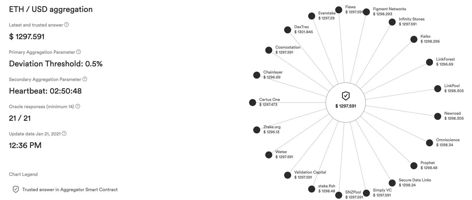 ETH/USDChainlink喂价从多个独立的预言机运营商聚合价格数据